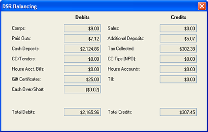 This screen shows the breakdown of the debits and credits for the DSR all on one screen to assist in identifying out-of-balance problems.