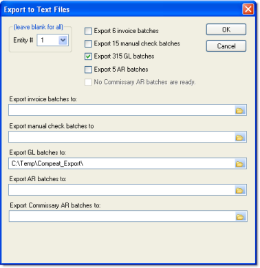 Check each type of record that you would like to export (the number of available batches is indicated). Only posted batches can be exported.